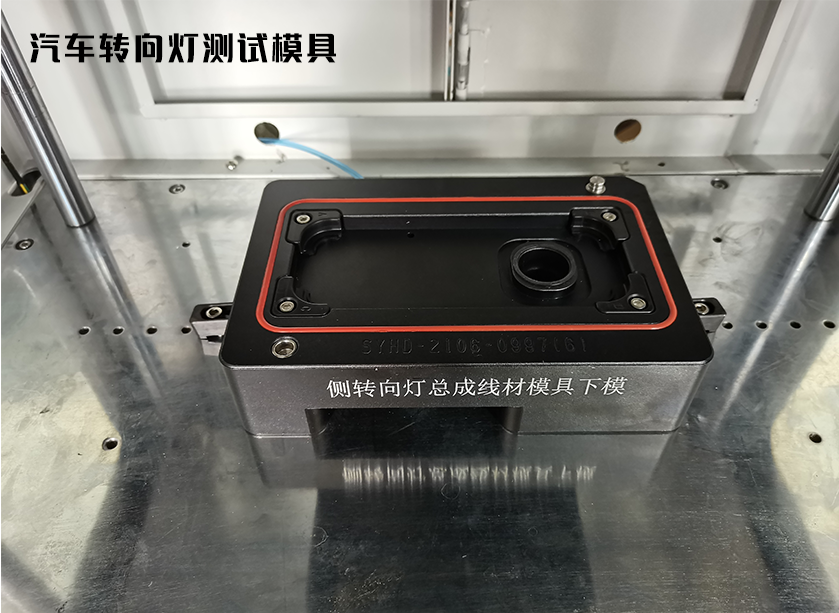 此模具测试的产品为汽车转向灯,测试超声波焊接好后的密封性是否合格,同时检测线束点胶处是否合格。更多信息,敬请咨询宁波海瑞思......